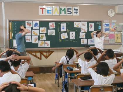 ・黒板に書かれてある(貼ってある)物をALTの先生が言われると、机の上に