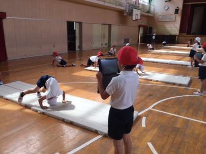 体育課の学習でマットを使った学習をしています。