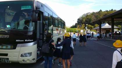 関ドライブインに着きました。トイレ休憩です。バスの中ではビデオを観て過ごしましたが、朝早かったからか、寝ている子もいました。いいペースです。