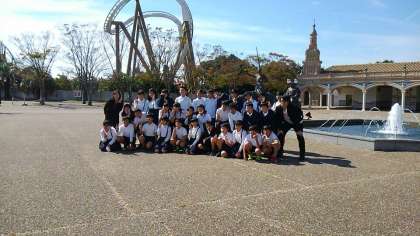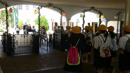 志摩スペイン村に着きました。道は空いていて順調です。体調が悪い人はいません。集合写真、グループ写真を撮って、遊園地をまわる際の約束事を確認しました。さあ、いよいよ活動します。