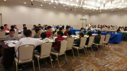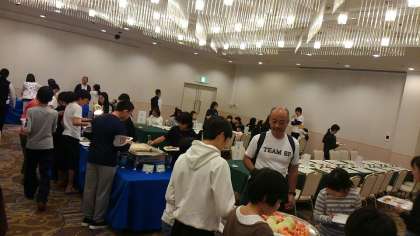 夜の食事はバイキングです。美味しそうな食事が並んでいます。思わず食べ過ぎないように気をつけて、仲よく食べてほしいです。