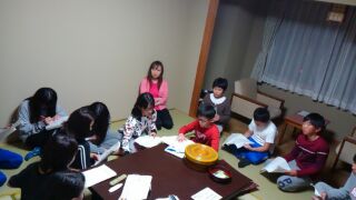 班長会議をしています。今日の反省と明日の予定の確認をしています。明日に備えて、ゆっくり休んでほしいと思います。