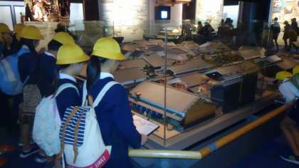 午後は、歴史博物館の見学です。10階まで一気に上がって、展示を見学しながら1階ずつ下りていきます。歴史を再現している展示を観ながら、6年生になって学習した歴史を思い出していました。考古学についてのパズルコーナーやスタンプラリーもあって、とても楽しめたようです。