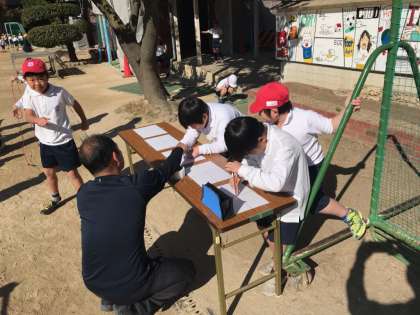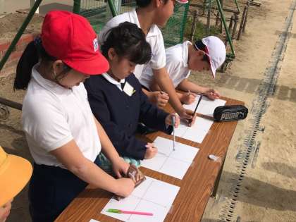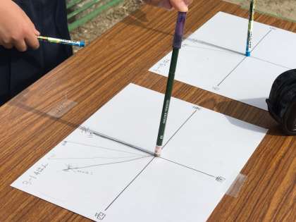休み時間ごとに影の動きを記録し、太陽の向きとの関係を考えます。