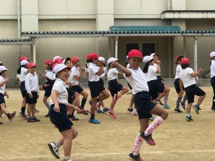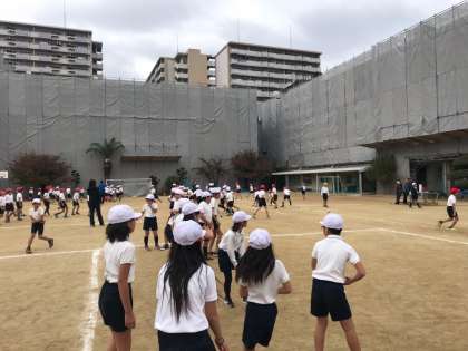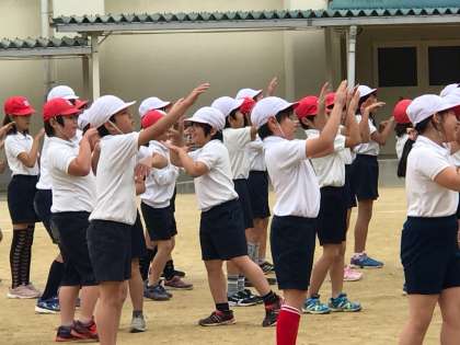 14日(水)に3・4年生は、運動場でドッジボールをした後に、「USAダンス」をみんなで踊りました。