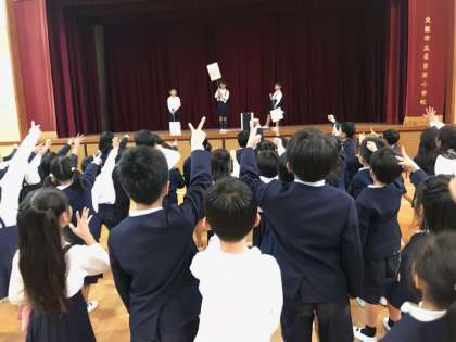 2年生の「さつまいもパーティー」に招待していただきました。2年生からさつまいもができるまでを教えてもらい、歌や合奏、ゲームと楽しい時間を過ごさせてもらいました。スィートポテトをごちそうになり、「おいしい!」「もってかえりたい!」とみんなとても喜んでいました。