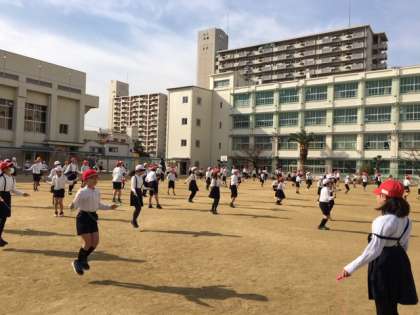 なわとび月間の縄跳びは、U,S,Aの曲に合わせて、リズムよく跳べるようになってきています。体育の時間にも取り組んでいるので、チェレンジタイムには二重とびにも挑戦し続けて跳べる子ども増えてきました。最後には、やり切ったという感じでポーズを決めています。