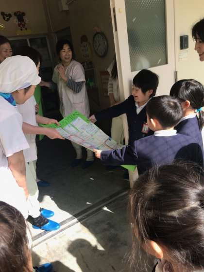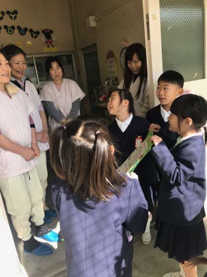 毎日おいしい給食を作ってくださる給食調理員さんへ、感謝の気持ちを込めて、お手紙をお渡ししました。調理員さんも喜んでくださいました。