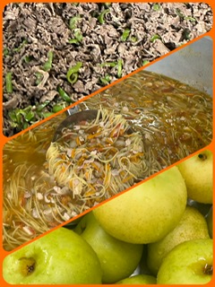 スパゲッティのさっぱりとした味わい、トマトやニンジンなどパスタと野菜のさわやかな彩にオレンジっぽく透き通ったスープなど、暑い今日でも食欲をそそる一品でした。牛肉の香味焼きは、釜で炒める方法で調理しましたがピーマンがしっとりとして香味と味付けが牛肉にしみこみ釜調理ならではの良さを出していました。子ども達は全学級完食が続いています。(校長より)