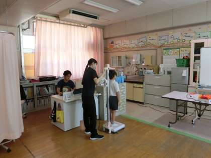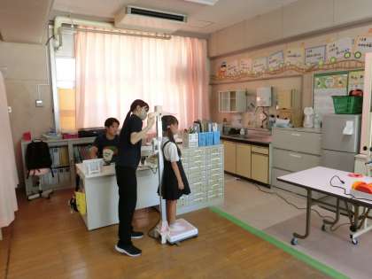 2学期初めての発育測定が始まりました。低学年からスタートし、中学年から高学年に移ります。子ども達は、夏休みの長期休業中にぐんと成長していることを感じます。久しぶりに会うと心身共にたくましく大きな成長をしていることが体や表情からよくわかりうれしく思います。