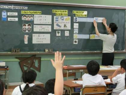 3年生は「カルシウムのはたらき」について学習しました。カルシウムが多く含まれている食べ物や一日にどれくらいのカルシウムを摂ったらよいのかを教えていただきました。