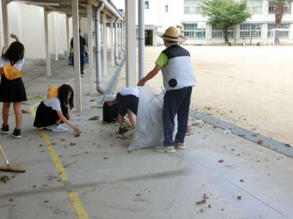 ヘチマやひょうたんの季節が終わりました。4年生は実を収穫し、ツルや茎、栽培に使ったネットなどの処理をしていました。今でもしっかりしたツルや茎が残っていました。