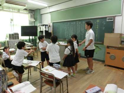 少し照れながらも、子ども達は登場人物になりきって演じるのがことを楽しんでいました。先生も一緒に物語文の楽しさを味わっています。