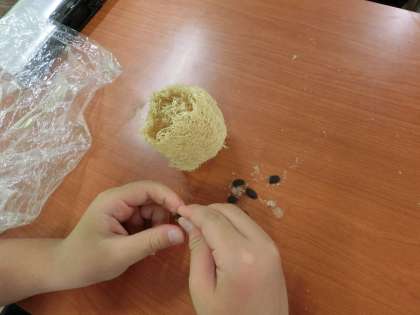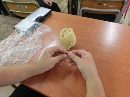 乾かしたヘチマは、昔から体洗いにも使える「たわし」になっています。種もとって来年の収穫に備えています。
