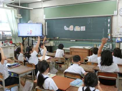 お話の順番を考えることは文章構成の力につながります。国語の学習で物語の楽しさを味わっています。
