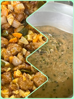 「酢豚」は、カリッと揚げた豚肉(角)ににんじん、ピーマン、玉ねぎなどの野菜を加えお酢のほどよい酸味と甘みのタレで仕上げた料理です。野菜もたっぷり入って栄養バランスのよい献立です。