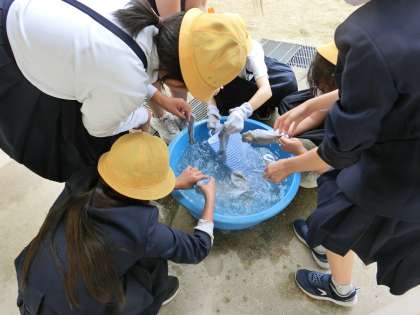 普段の洗濯は洗濯機を使うことが多いと思いますが、洗濯機がない頃は手で洗濯をしていました。その時の苦労を子どもたちは経験できたのではないでしょうか。
