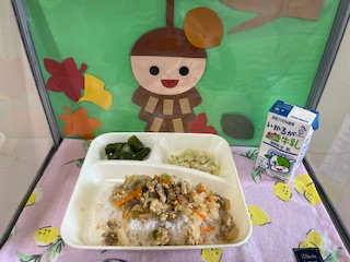 「他人丼」は、牛肉、にんじん、玉ねぎなど甘辛く煮て、ごはんに合う味付けで食べやすく子どもたちにも人気の献立です。