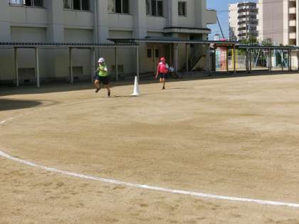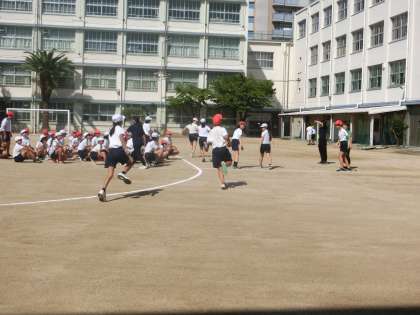 6年生がリレーの練習をしました。入念にバトンパスの練習を重ね、実際に今日走ってみました。