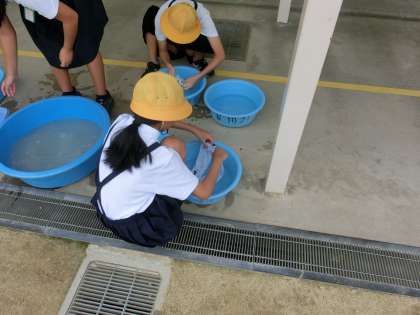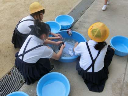 今日は6年2組が行いました。実際に手で洗濯をしても、なかなか汚れが落ちにくいことがわかりました。