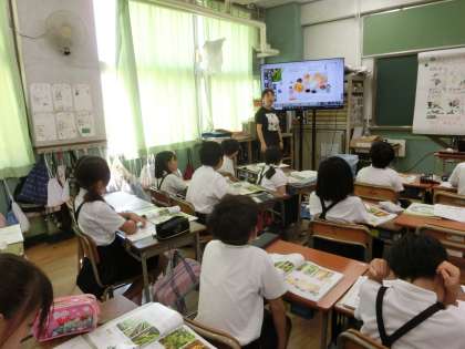いろいろな植物の花が咲いた後、その実が、どうなるのか?どんなものに変わっているのか?使われているのか?子ども達は身近な食べ物やものに、植物の実が変化していることを知りびっくりしていました。でも、毎日、アレルギー対策の給食放送を聞いているので、大豆が豆乳や醤油、みそ、豆腐、厚あげ、うすあげなど、いろいろなものに変化していることはとてもよく知っていました。理科の学習内容も、いろいろなことに関係していますね。