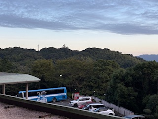もうすぐ、全体の起床です。バスも駐車場で子ども達を乗せることを待ってくれているようです!