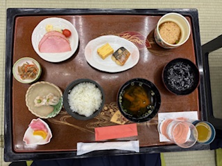 楽しみの朝食がはじまりました!子ども達はみんな元気でそろっています。ご安心ください。