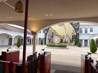最後の記念写真をアトラクションコーナーの入り口、スペインらしい階段で撮影し、最後の訪問場所パルケエスパーニャスペイン村を後にしました。