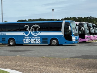 ゲートを出ると、私たちを大阪に運ぶバスがスタンバイ。夢の2日、思い出と共にバスは最終走行に入りました。