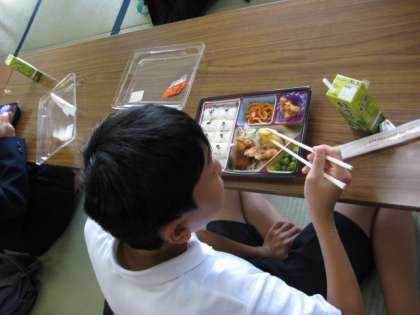 陶芸の後は、お昼ごはんでした。お弁当をいただきました。