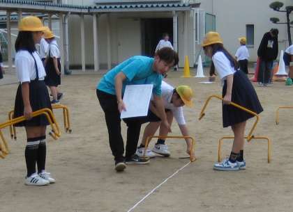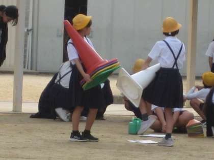 運動委員会は準備係を担っています。演技や競技の準備と片づけを素早く行わなければなりません。今日は本番さながらに、道具をもって用意や片づけの練習をしていました。