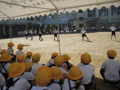 1年生のリハーサルを見た後、2年生も演技・競技を披露しました。1年生もワクワクして見ていました。お兄さん・お姉さんとして成長した姿を1年生に見せることができました。