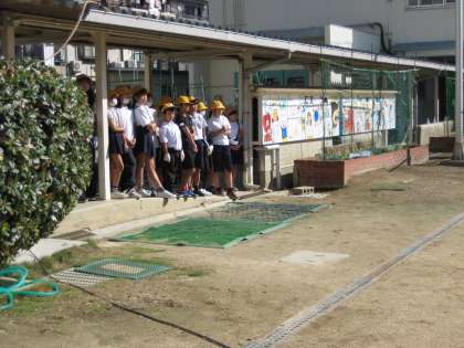 気が付くと後ろの畑で、稲刈りの準備をしていた5年生も、思わずみんなで演技に見入っていました。たくさんの中で最後の練習を終えました。