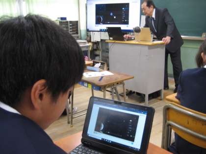 近畿科学技術委員会の日本技術士会会員の方をゲストティチャーとしてお招きして、理科の特別授業「月の形と太陽」を学習しました。タブレットの映像を使い、地球と月の動き、太陽の光の向きを目の前で体験しているように感じながら学んでいました。