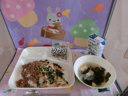 ビビンバは、韓国・朝鮮を代表する混ぜご飯です。たくさんの野菜とひき肉をごはんと混ぜて食べました。子どもたちにとても人気のメニューです。