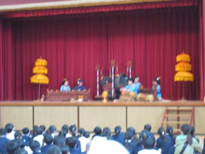午後から、芸術鑑賞会でバリ舞踊・ガムラン演奏を鑑賞したした。演技の鑑賞だけではなく、バリの楽器(ガムラン)の特徴や演奏の紹介、バリ舞踊の特徴的な動きも教えていただきました。