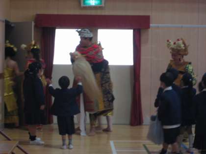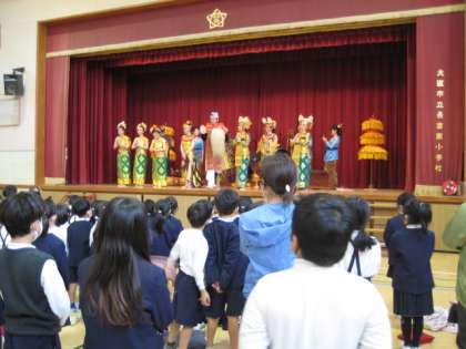 観賞会の最後、出演者の皆さんに感謝の気持ちでごあいさつをし、最後に子ども達の近くを回っていただきました。