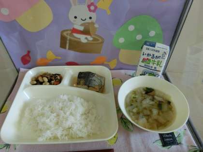 五目汁は、たくさんの野菜が入っていて、やさしい味付けになっていました。
