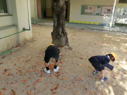 生活科の学習で落ち葉などの観察をしました。