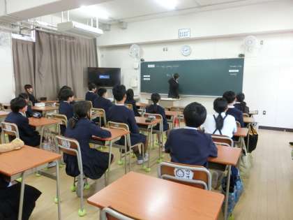 生徒会の先輩方から説明を受けた後、中学校の先生による授業を受けました。子どもたちは、少し緊張した様子でしたが、4月から「中学生になる!」という夢と希望をもつことができたのではないでしょうか。