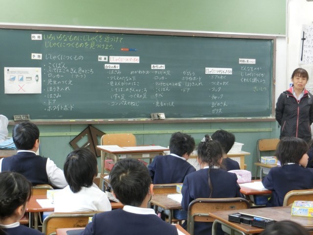 最後に、電気を通すもので学習した時と同じように、じしゃくにくっつくものにはどんな性質があるのか次の時間に学習することを確認しました。