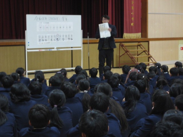 朝会では、干支の話をはじめ日本や世界の現状にも触れました。私たちが平和に新年を迎えていることのありがたさを伝えました。