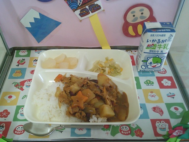 カレーライスの「ラッキーにんじん」は、調理員さんがいつもよりたくさん作ってくれました。