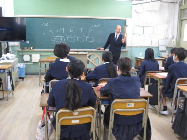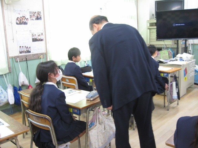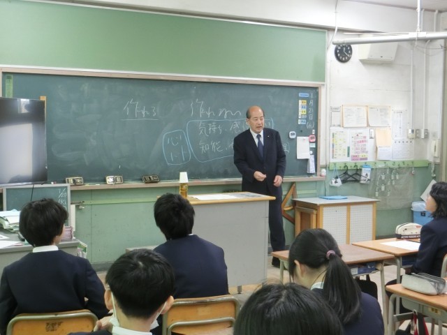 「科学の進歩と人間」をテーマに、人間と人間の関わり合いこそがとても大切であること。その関わりには、人間にしかない感謝の気持ちや表情などを伝え合うことができること。その気持ちを持ち続けて中学生に向けて、引き続き頑張ってほしいこと。などの区長様の思いをお話されました。
