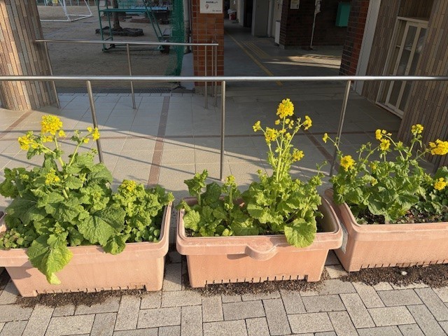 写真は、梅、水仙、菜の花です。児童のみなさんも学校のどの場所にあるのか探してみてください。