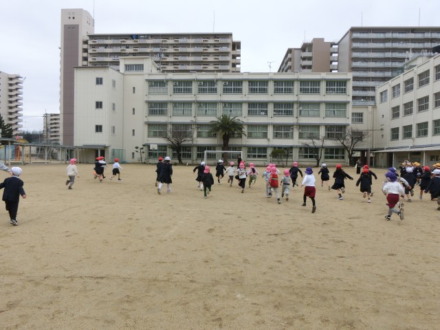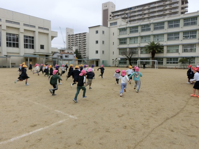 まずは各クラスで、国語科「スイミー」の音読を1年生が披露しました。そのあとは運動場に出て、おにごっこなどを行いました。