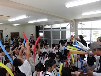 毎年恒例の「ふれあい活動」に2年生が参加しました。いつもお世話になっている地域の方々との活動を、子どもたちは楽しみにしています。今回は、風船で形に表す、バルーンアートに取り組みました。作り方を見せてもらったあと、制作にとりかかりました。作るのにかなり苦労しましたが、楽しく活動することができました。
