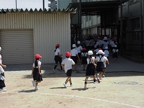 「大阪880万人訓練」が行われ、本校でもこの訓練に合わせて避難訓練を行いました。まず、地震が発生した想定の下、机の下に避難する行動をとり、その後、運動場へ避難しました。人員確認後、大津波警報が発令された想定で、校舎の3階以上に避難しました。静かに、素早く行動することができ、いろいろな先生の話もしっかりと聞くことができました。