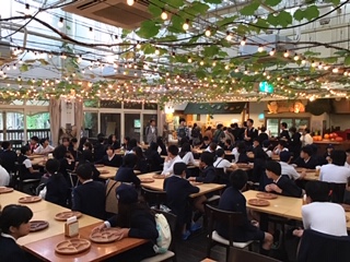 修学旅行最後の食事となりました。バイキングにも慣れて、上手く取り分けて食べていました。