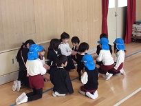 1年生と瓜破北幼稚園の子どもたちとの交流会がありました。先日、地域の方々と交流した際に教えていただいた昔遊びをしました。今日は1年生が、幼稚園の子どもたちに遊び方やコツを一生懸命教える姿が見られました。短い時間でしたが、楽しく仲よく過ごすことができました。